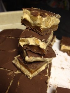 I did find time to make one dessert with the kids. Homemade Snickers. Yes they do taste as good as that sounds. Here’s my picture: